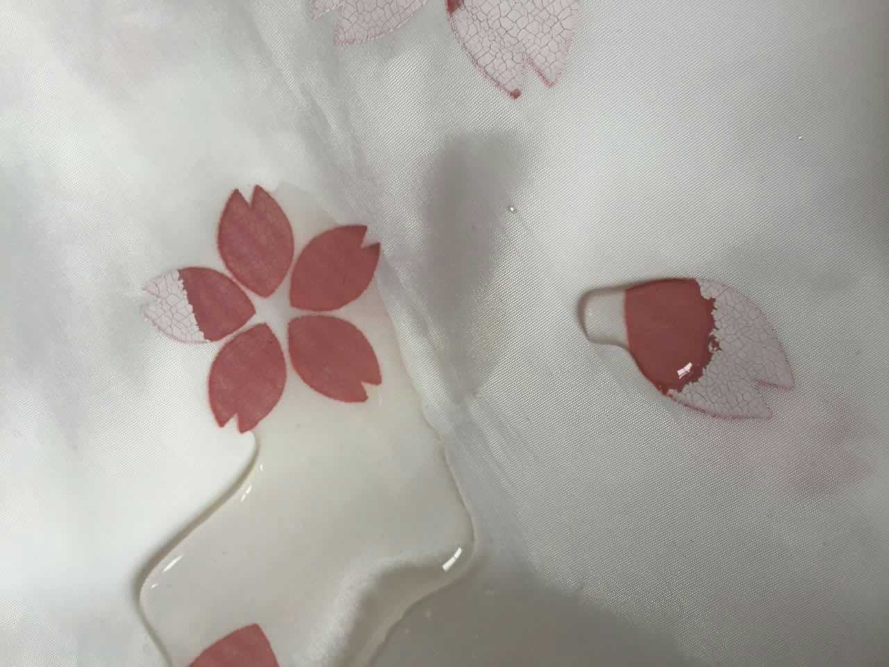2.待图案的变色颜料干透后,用100-120目丝网(水性网)将遇水变色颜料印在图案之表面,若需稀释。可加入小量蒸馏水稀释。兴盛遇水变色颜料干透后用肉眼几乎看不见,显示透明的效果。